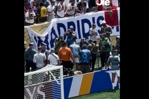 皇马前锋姆巴佩也上前关心这位志愿者的情况,并向队友索要冰水为这位志愿者饮用。这位志愿者此后被送离球场。